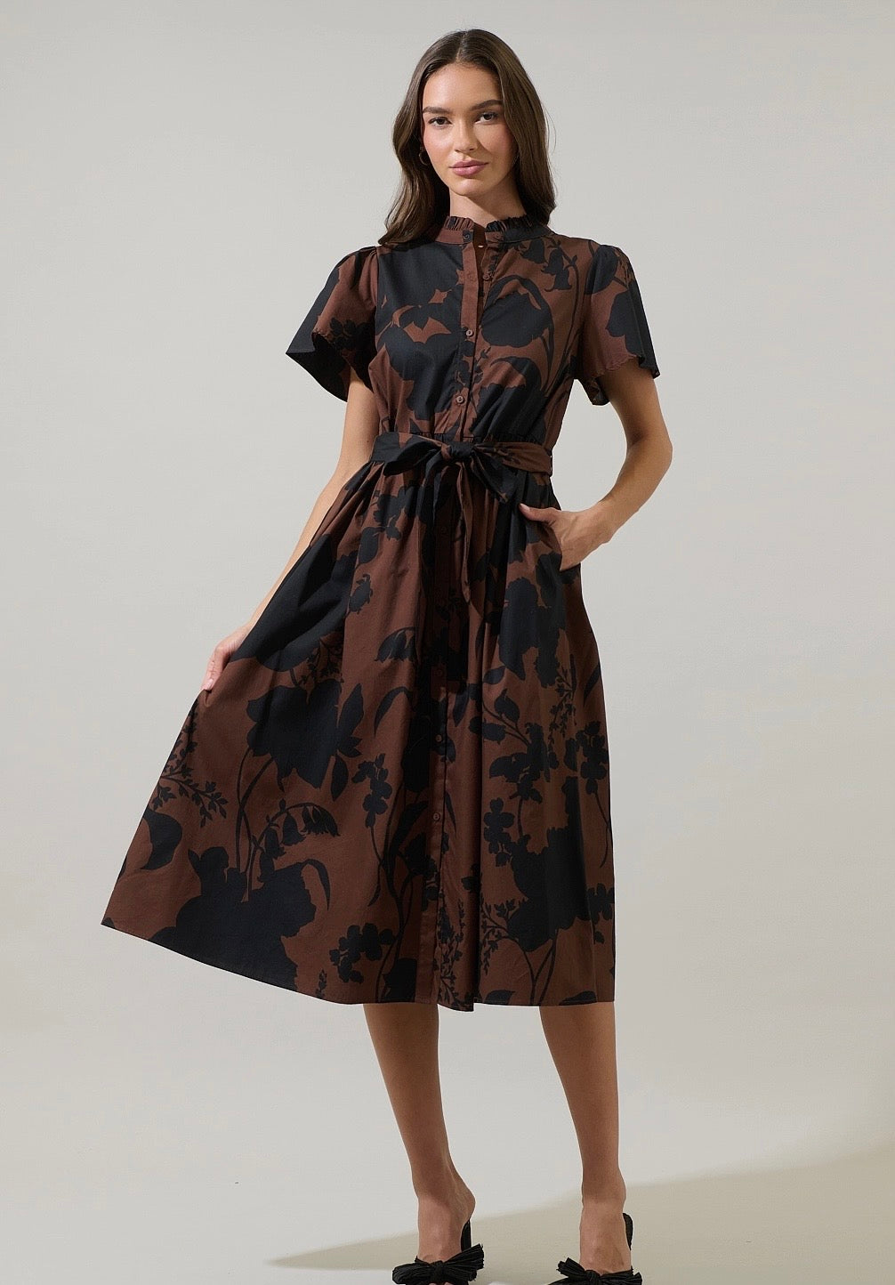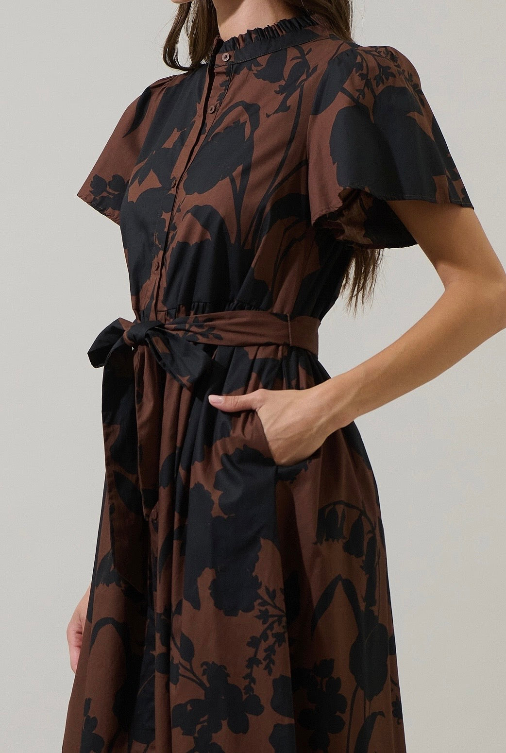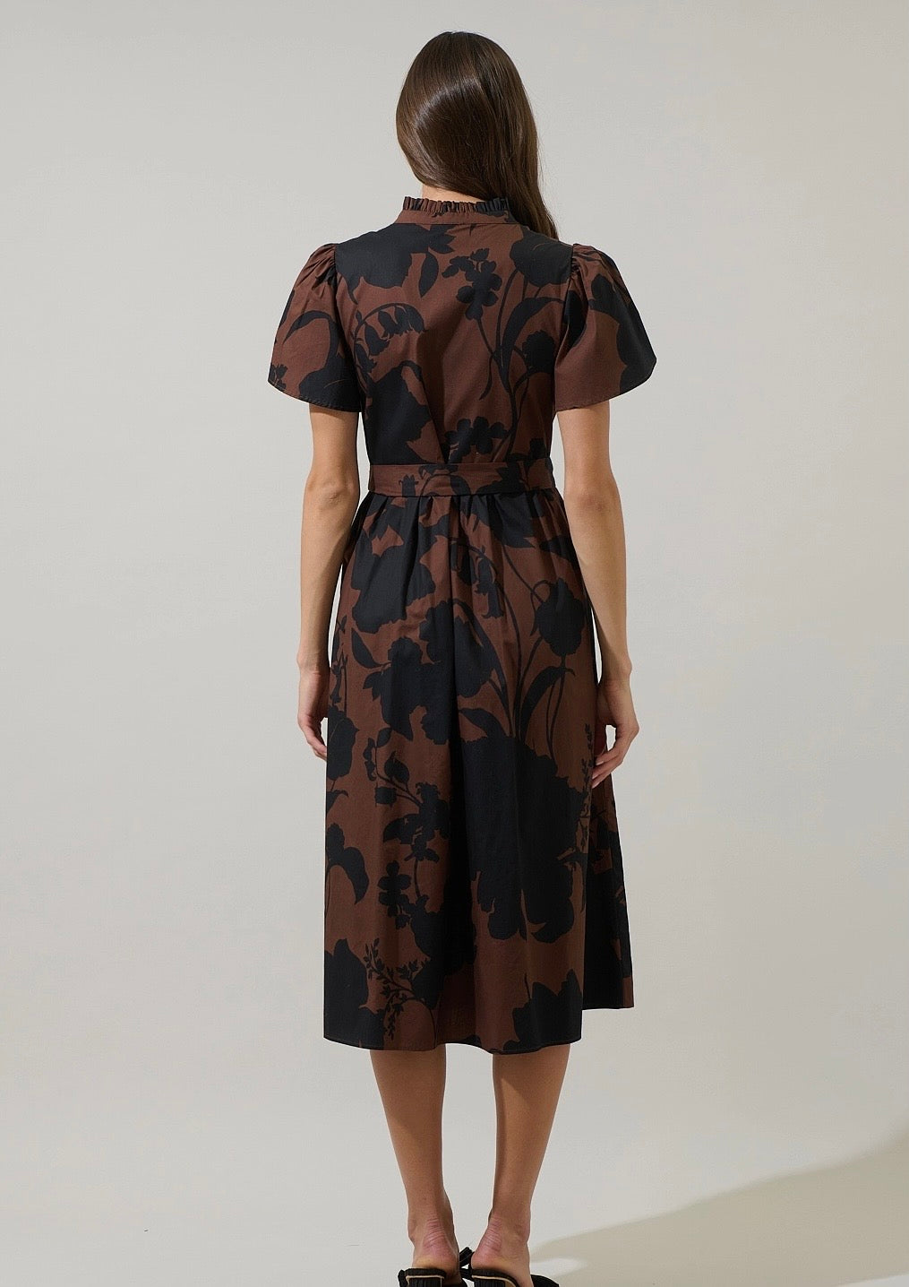 Somerton Floral Puff Sleeve Midi in Brown