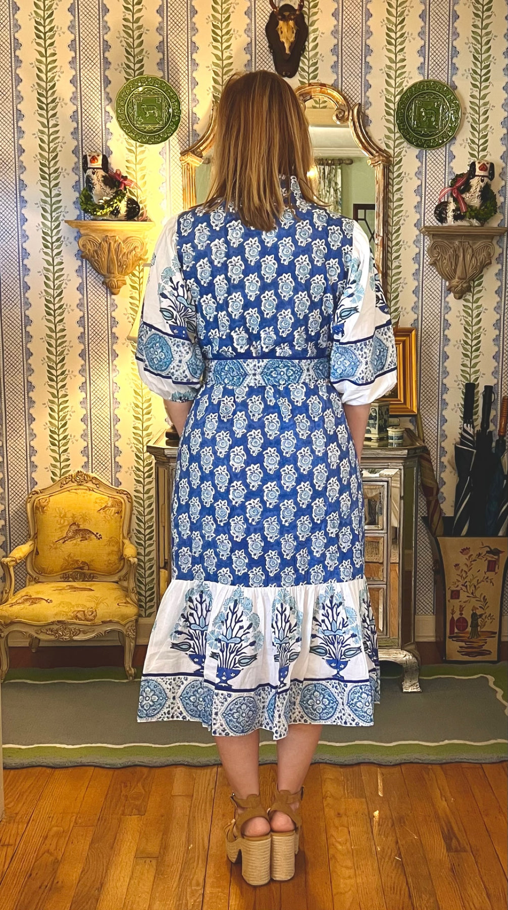 Charleston Blockprint Midi Dress in Blue Medallion |  Dress - Miss Madigan | Women&