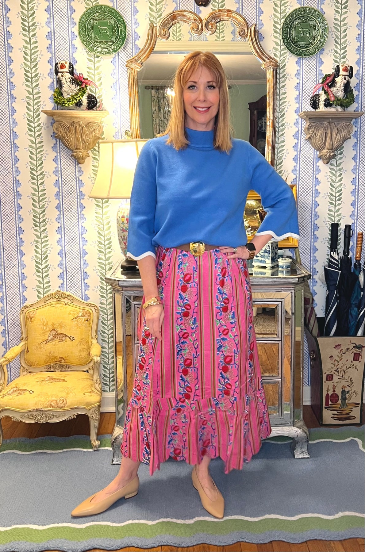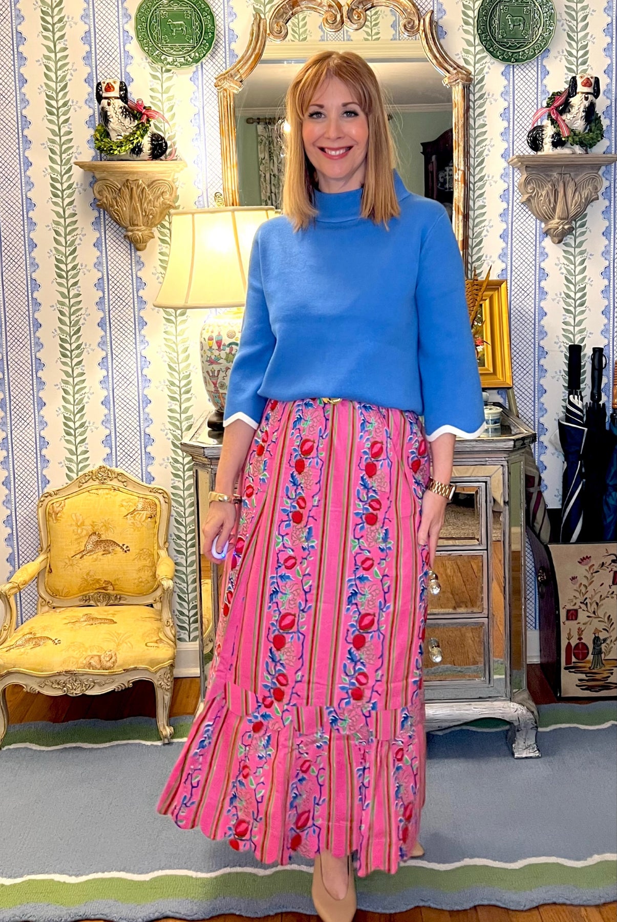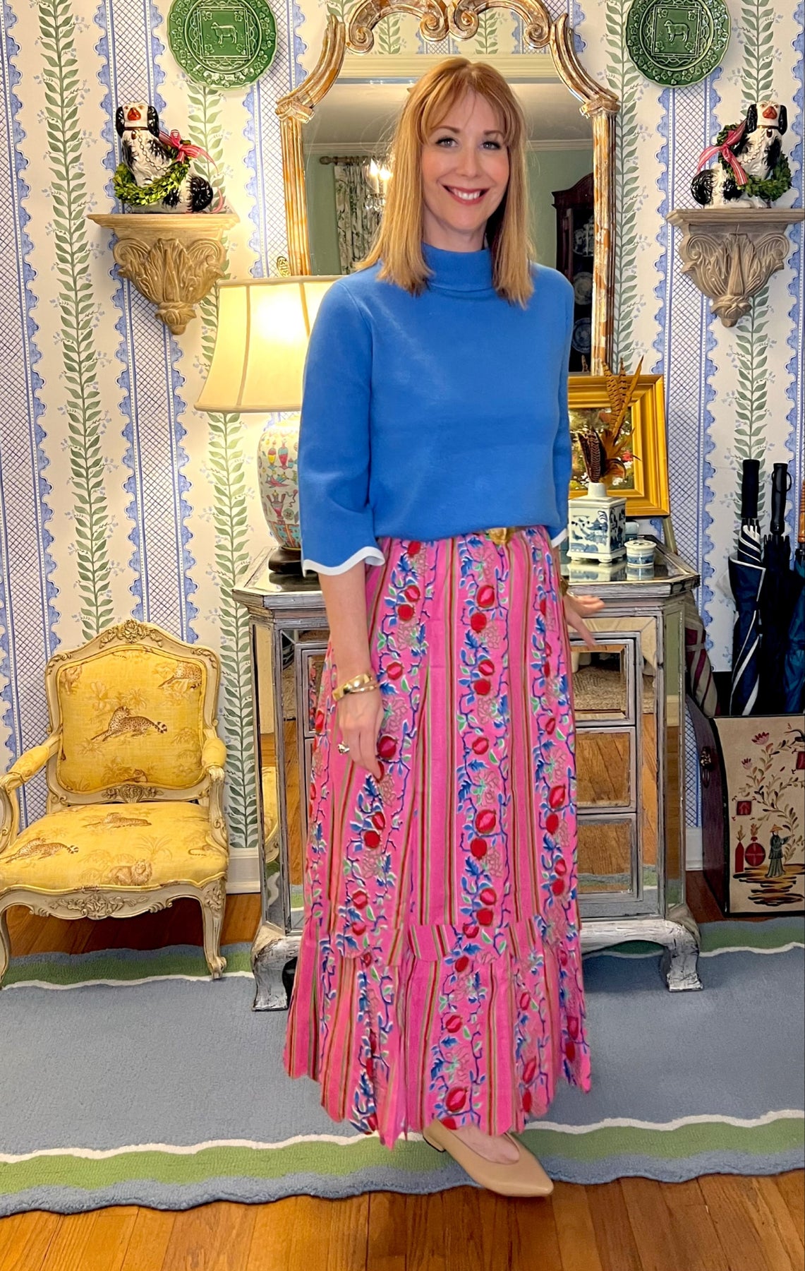 Charlotte Scalloped Maxi Skirt in Pink Floral