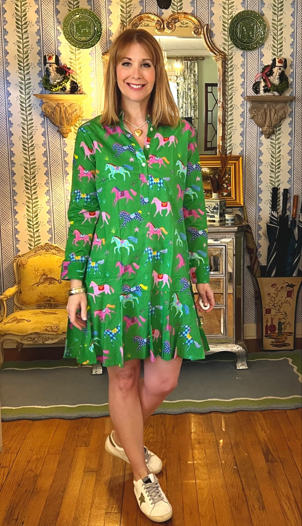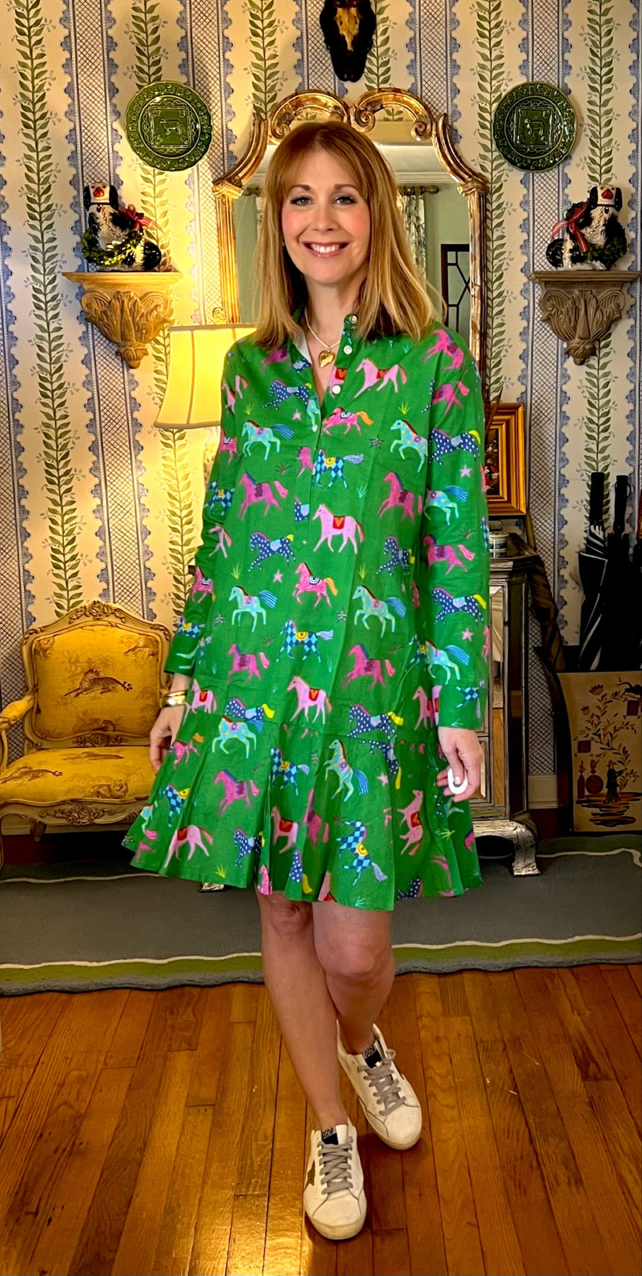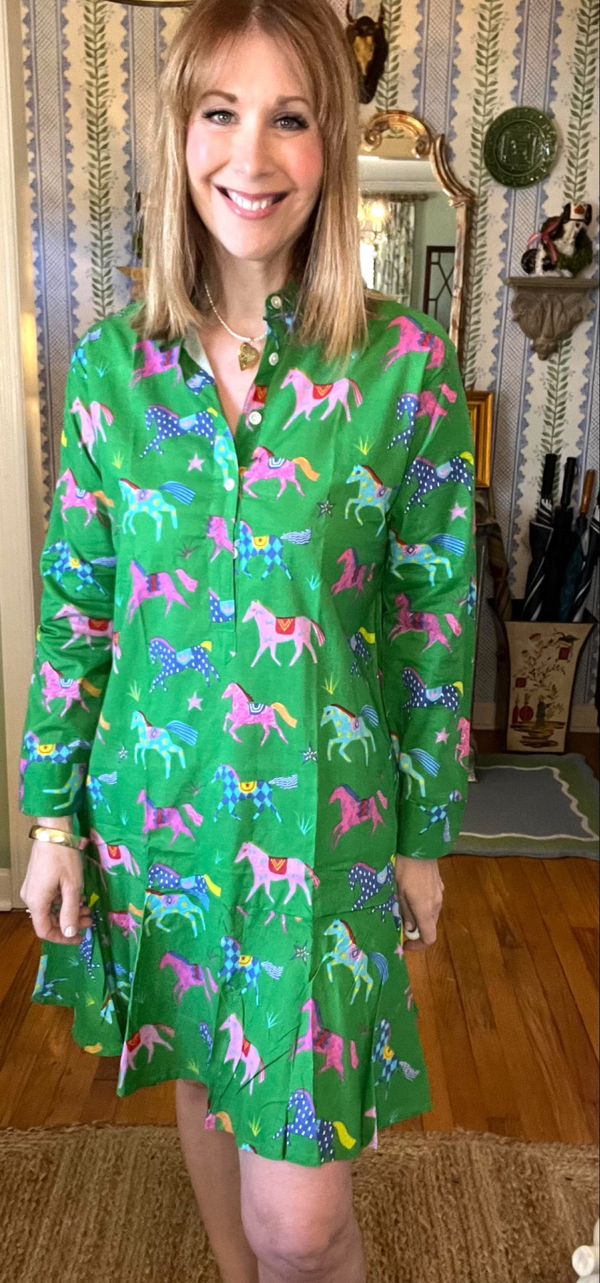 Ophelia Block Print Flounce Mini Dress in Painted Ponies |  Dress - Miss Madigan | Women&