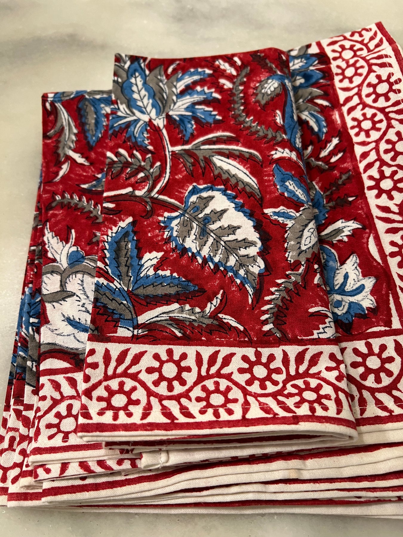 Red Floral Block Print Napkins